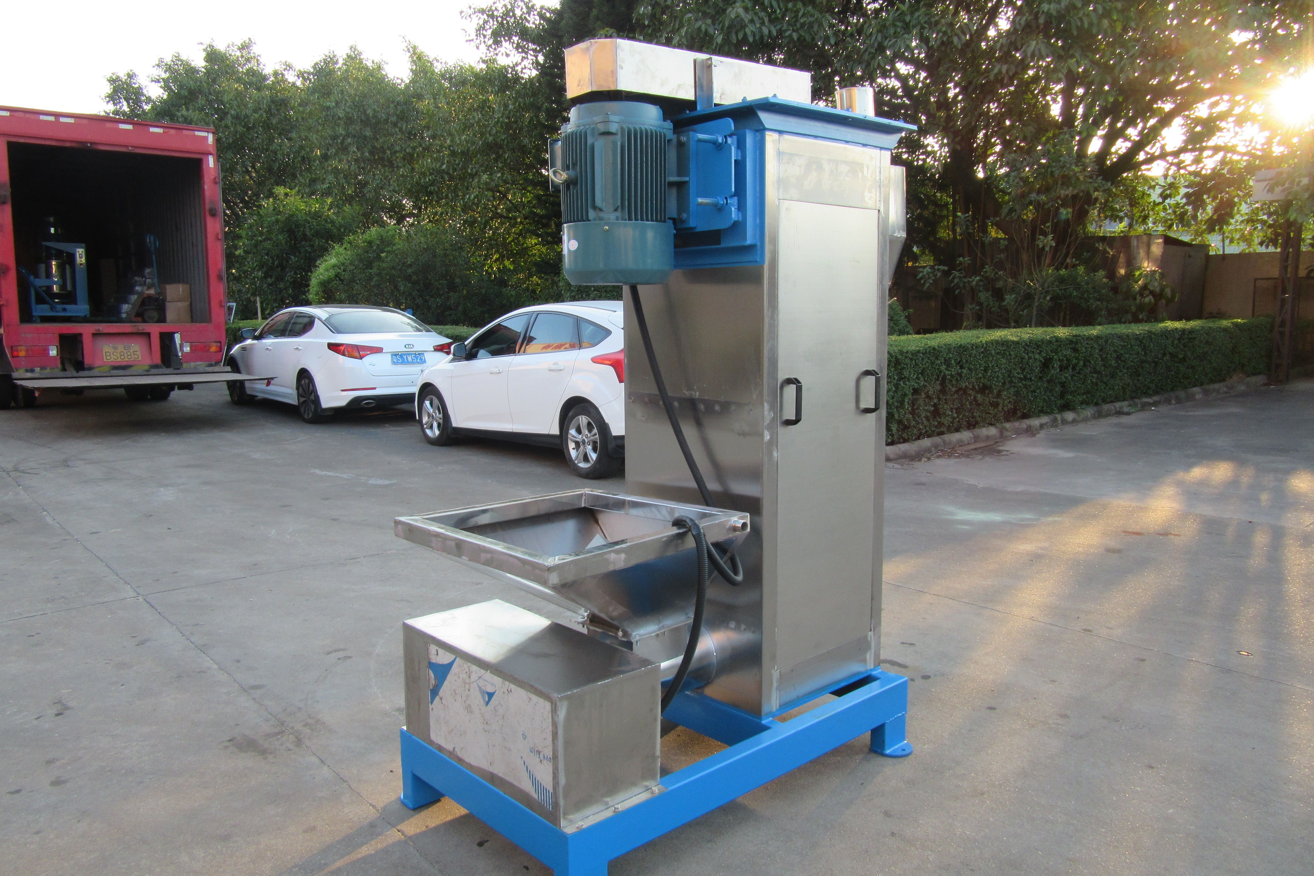 立式脫水機主要由外殼、濾網、螺旋推進器、電機和減速器等組成。外殼通常采用不銹鋼材料制造,以確保設備具有較強的耐腐蝕性能。濾網位于設備內部,用于過濾物料中的固體顆粒,使其與水分分離。螺旋推進器則負責將物料從進料口輸送至出料口。